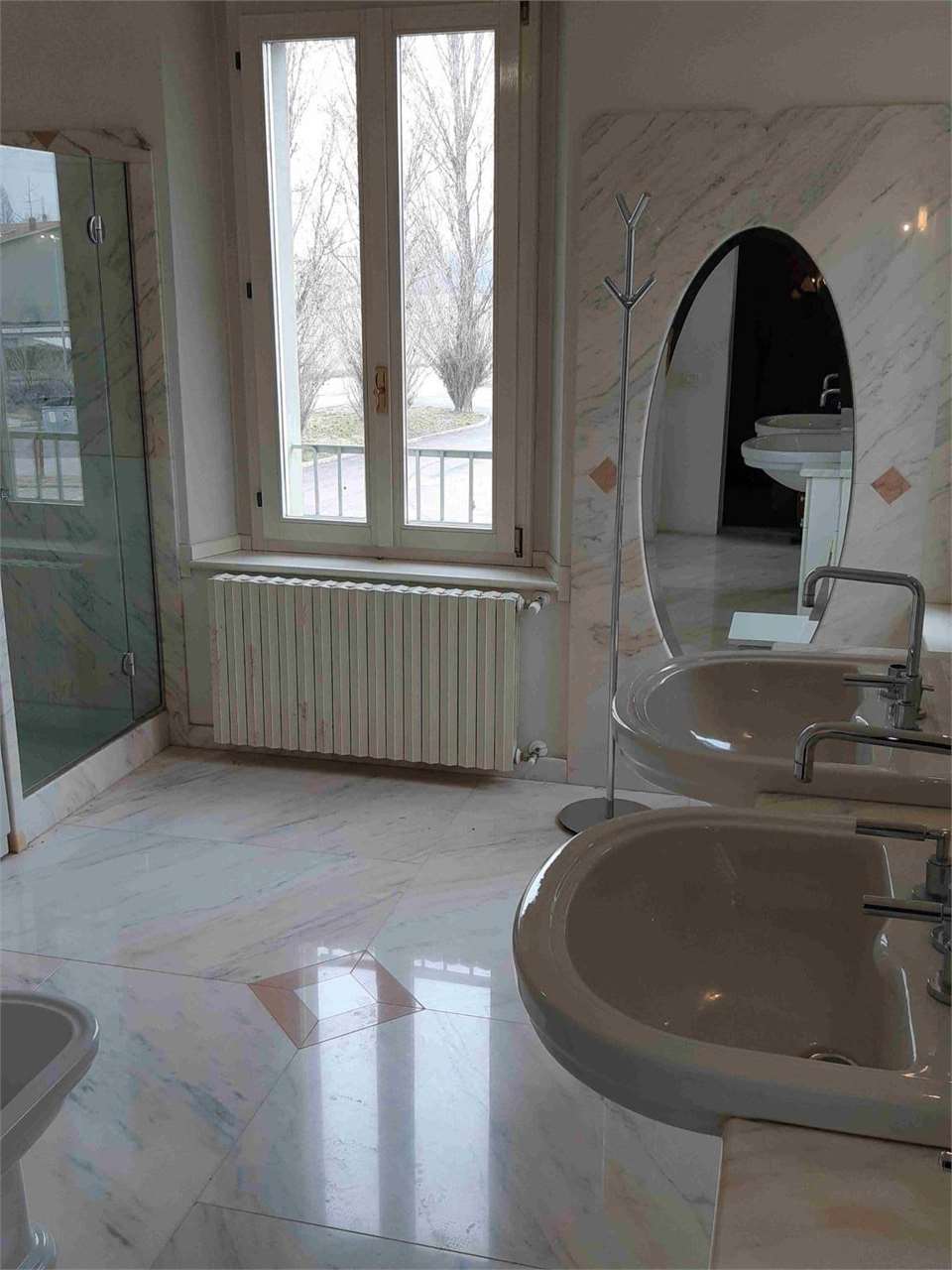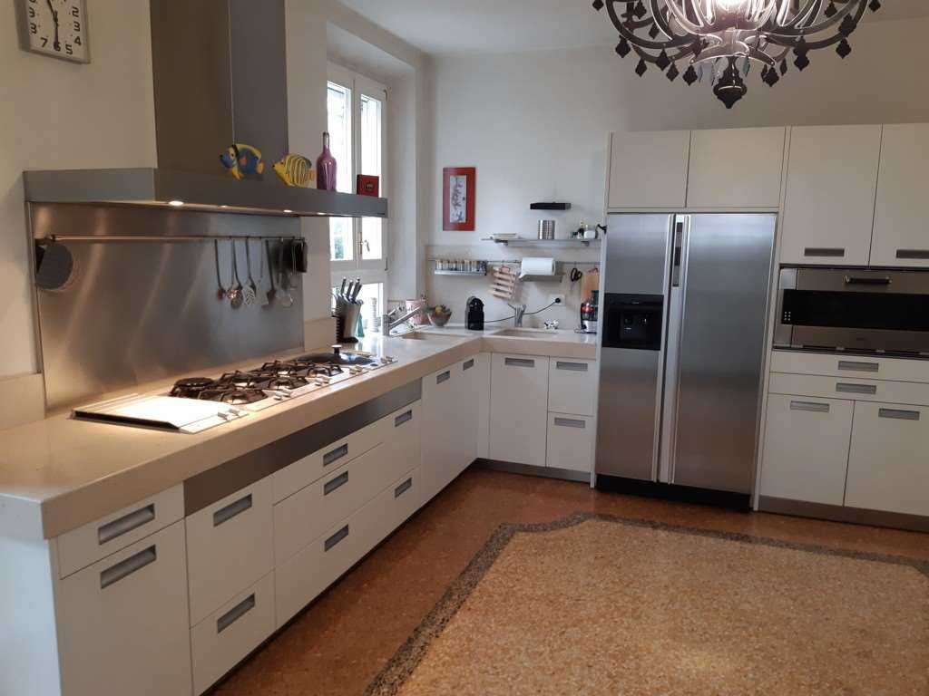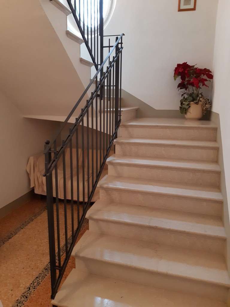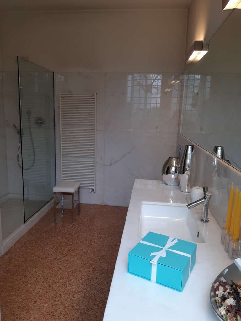 I pavimenti sono in battuto veneziano per il piano terra e teak del siam per il restante oltre a marmi per i bagni.